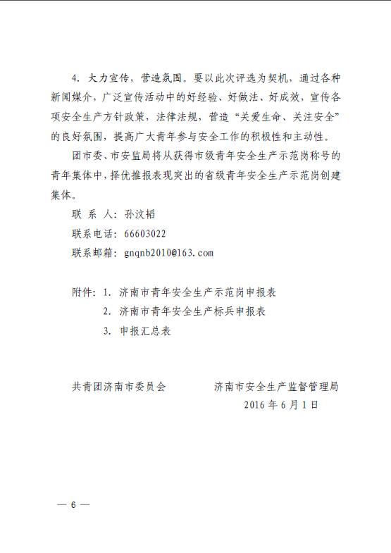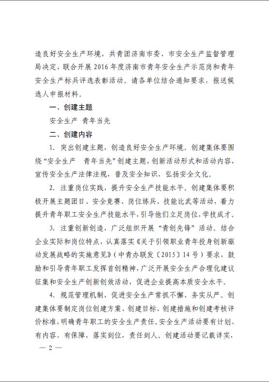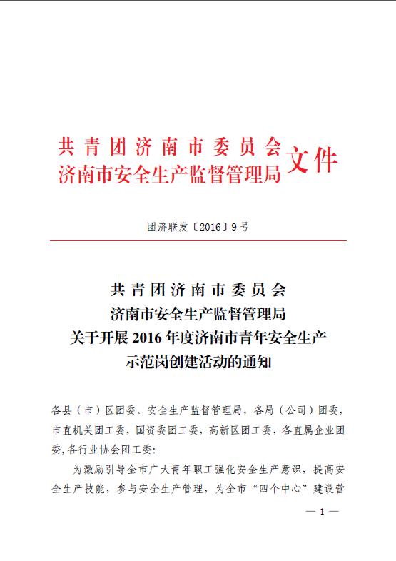 共青团济南市委员会济南市安全生产监督管理局关于开展2016年度济南市青年安全生产示范岗创建活动的通知